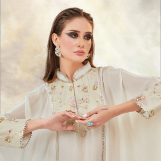Vamaone's one of the last few collections, "Kaafila," captivated audiences worldwide with its exquisite craftsmanship and timeless elegance. This collection featured Pure Modal Kaftans, each meticulously handworked with intricate jardoz embroidery and lustrous pearls. The result was a stunning blend of luxury and artistry, celebrating both tradition and modernity. "Kaafila" quickly garnered global acclaim for its attention to detail and the seamless fusion of cultural heritage with contemporary design, resonating deeply with fashion aficionados everywhere.